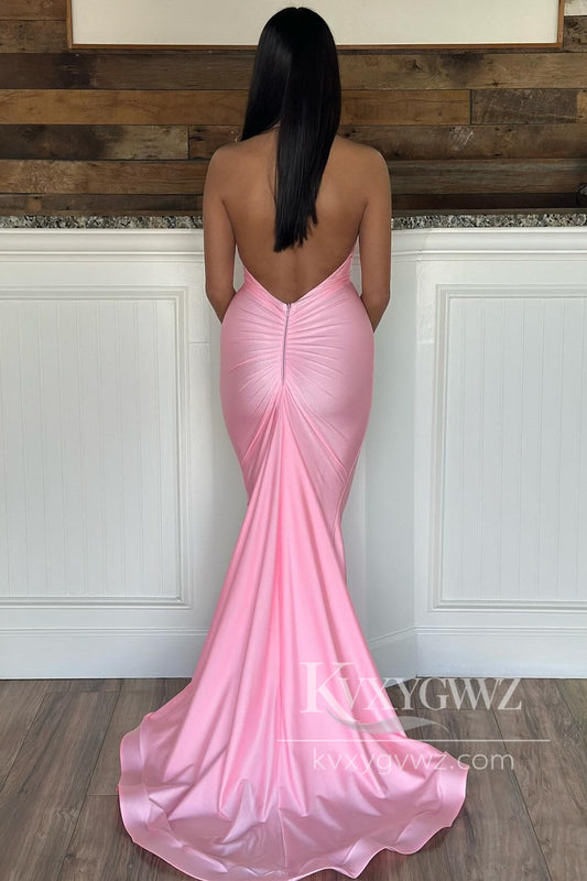 Chic Mermaid Purple Halter Elastic Evening Dress Satin Long Prom Formal Prom Dress LF603