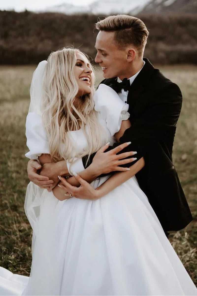 Ball Gown Square Neck White Satin Wedding Dresses Gown HS905