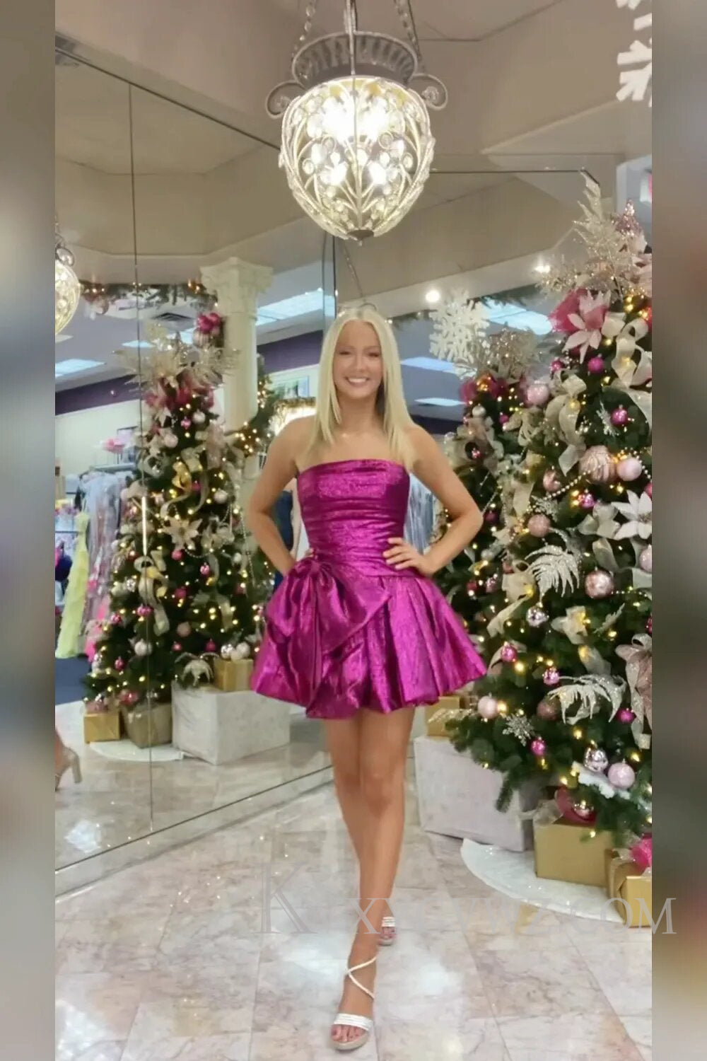 Blue Strapless Corset A Line Short Homecoming Dress With Bow LF101