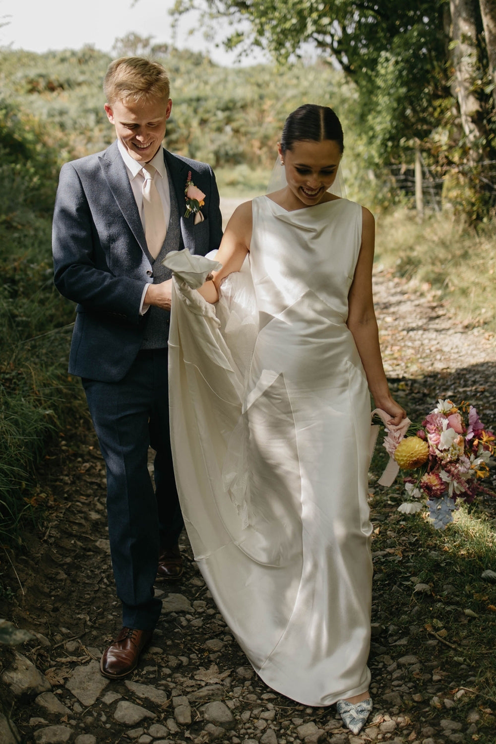 Bohemian Graceful Mermaid Silk Satin Long Wedding Dresses Gown HS753