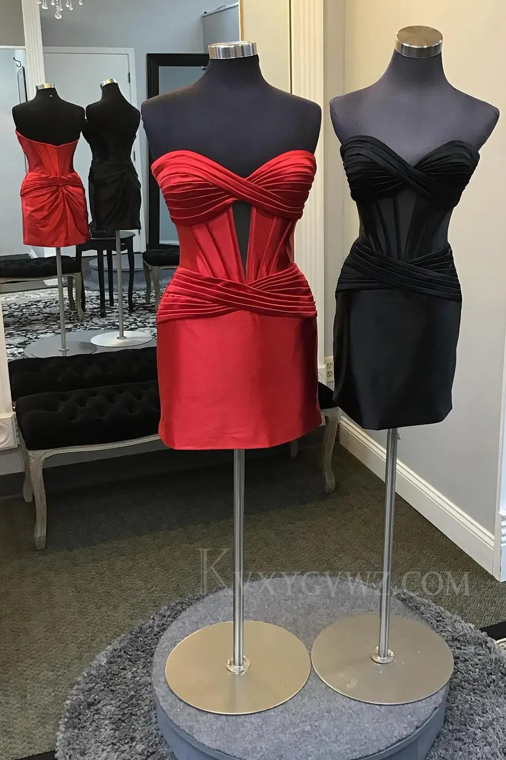 Burgundy Corset Strapless Tight Short Homecoming /Cocktail Dress LF313