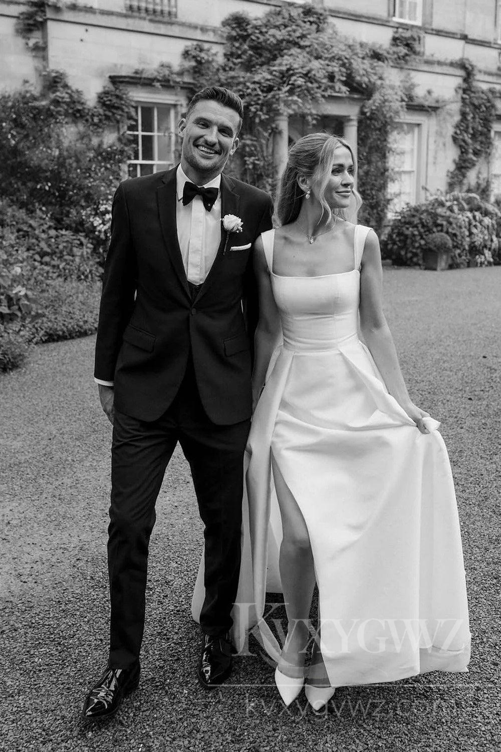 A classic and timeless design, this satin A-line wedding dress features delicate spaghetti straps and a beautiful train. The simplicity of the fabric combined with the luxurious satin creates a stunning, flattering silhouette perfect for any bride. Ideal for an outdoor wedding, this dress exudes understated elegance while offering comfort and style. Pair with subtle accessories to let the dress shine.