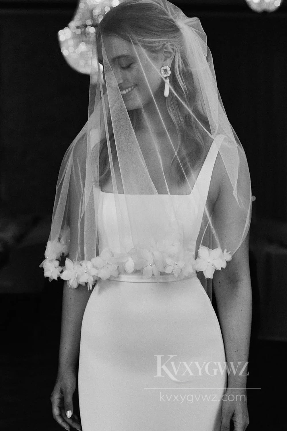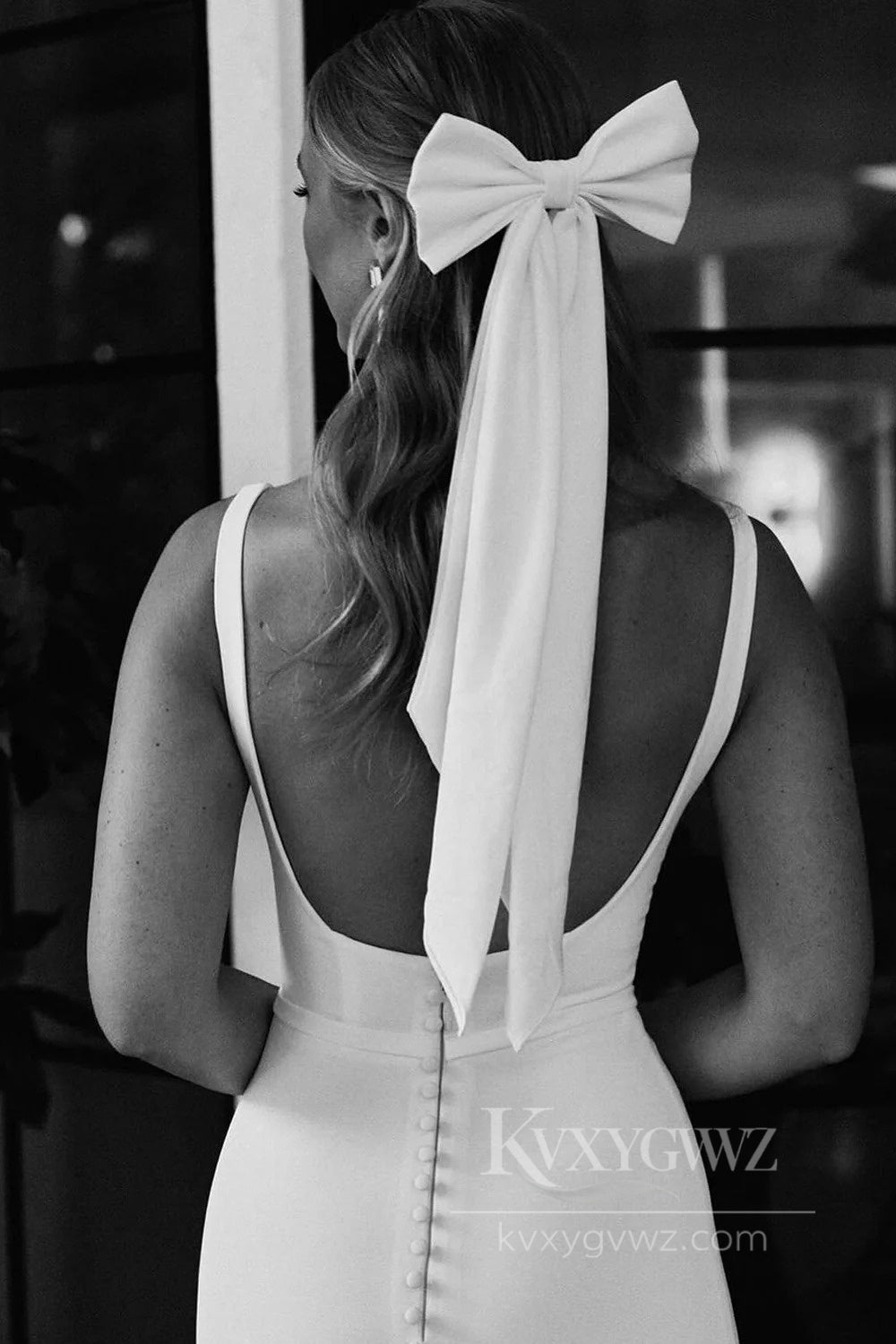 Create a stunning bridal look with this satin mermaid wedding dress, designed with flattering spaghetti straps and a dramatic flare at the bottom. The minimalist silhouette emphasizes elegance and sophistication, while the delicate feathered veil adds a whimsical touch, perfectly blending modern style with classic bridal charm. Ideal for brides seeking a sleek, chic look with an element of surprise, this gown is perfect for an indoor or elegant outdoor ceremony. A timeless choice that radiates beauty and grace, with a hint of contemporary flair.