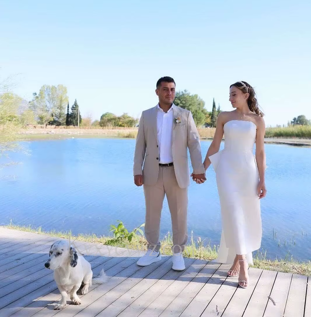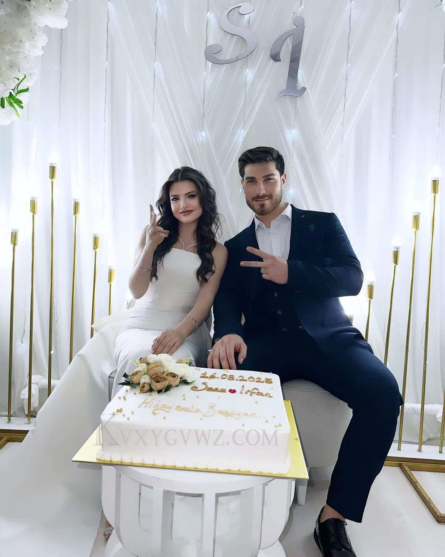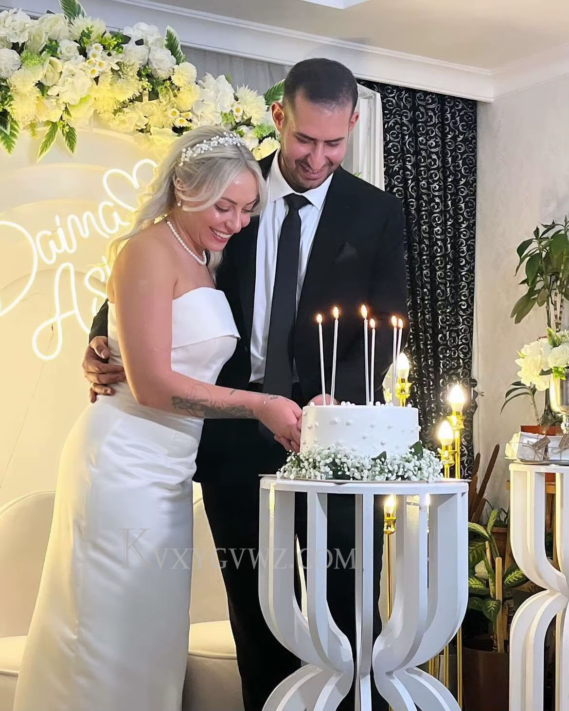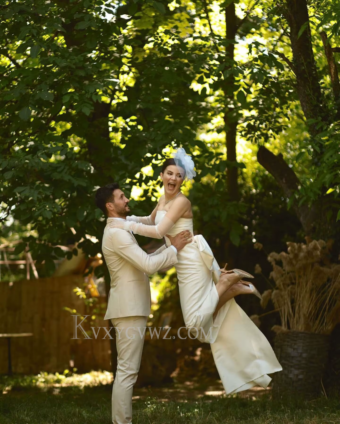 Elegant Strapless Satin Wedding Gown/Dress With Bow HS410