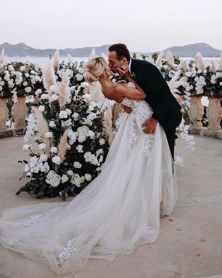 A Line Sweetheart Tulle Wedding Dresses Gown with Appliques VKWD062002