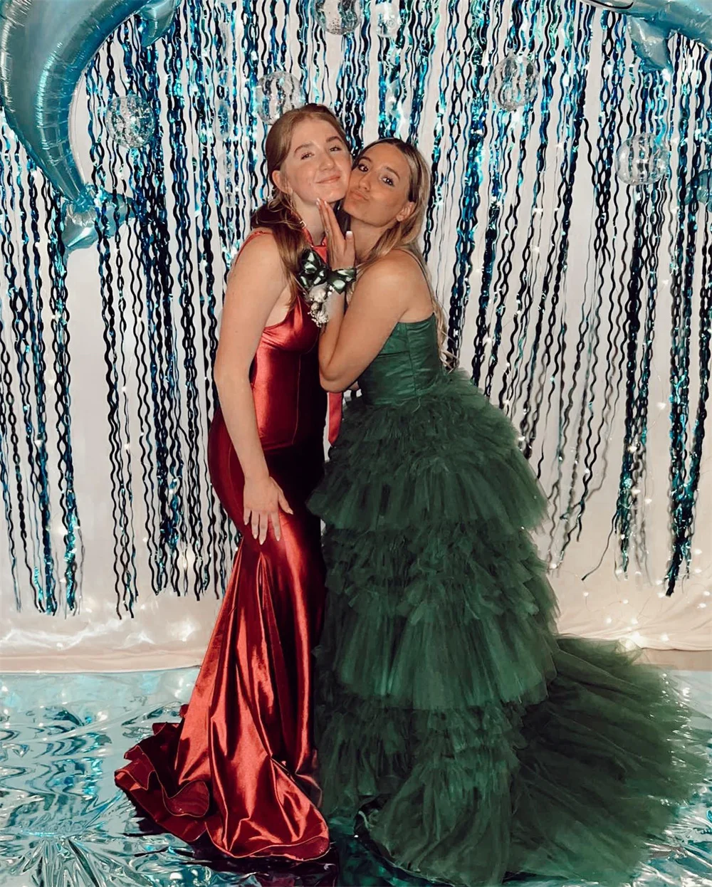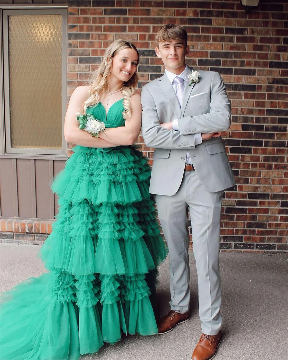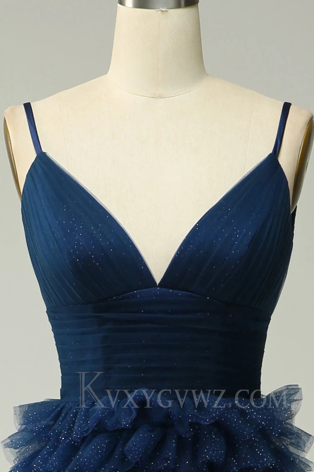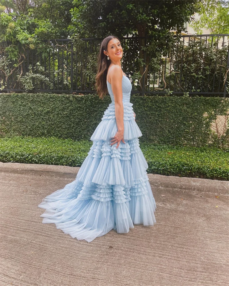 Fuchsia Tulle Ruffles Spaghetti Straps Long Prom Dress LF022