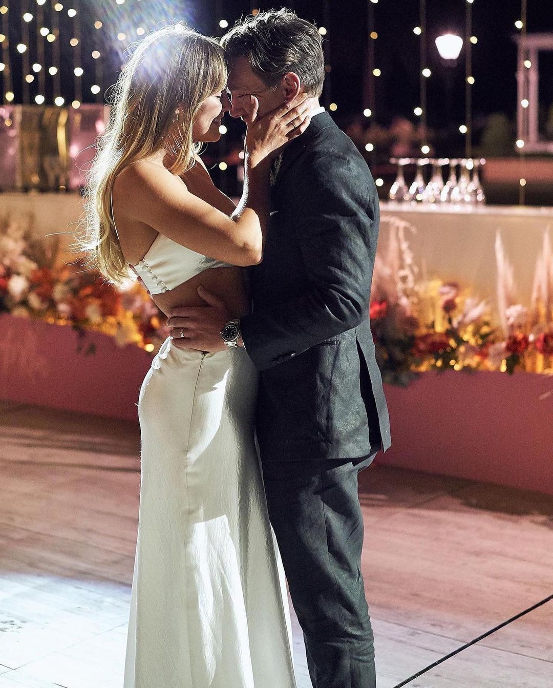 Glamorous A Line Two Piece Sweetheart Satin Wedding Dresses Gown HS776