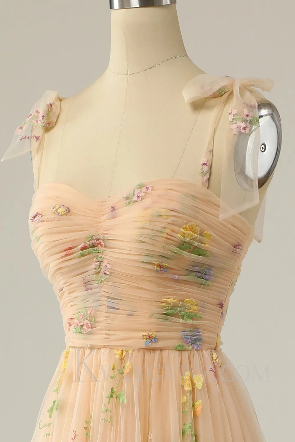 Green Embroidery Floor length A Line Long Prom Dress LF040