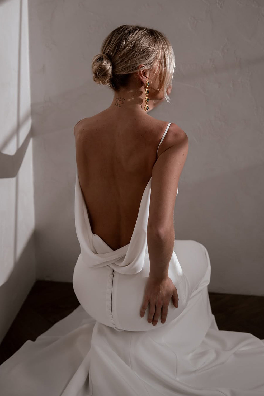 Mermaid Cowl Neck White Silk Satin Wedding Dresses Gown HS819