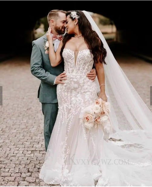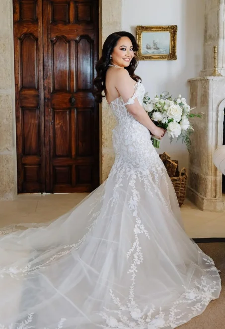 Off The Shoulder Mermaid Sweep Train Wedding Gown/Dress With Appliques HS467
