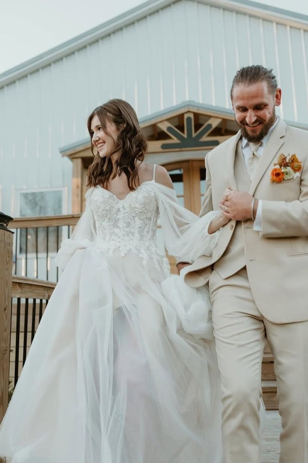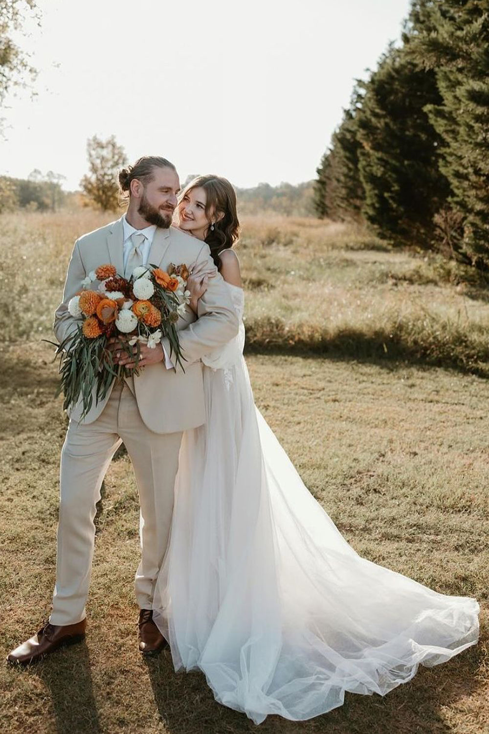 Pastoral Style A-Line Off the Shoulder Tulle Wedding Dresses Gown HS843