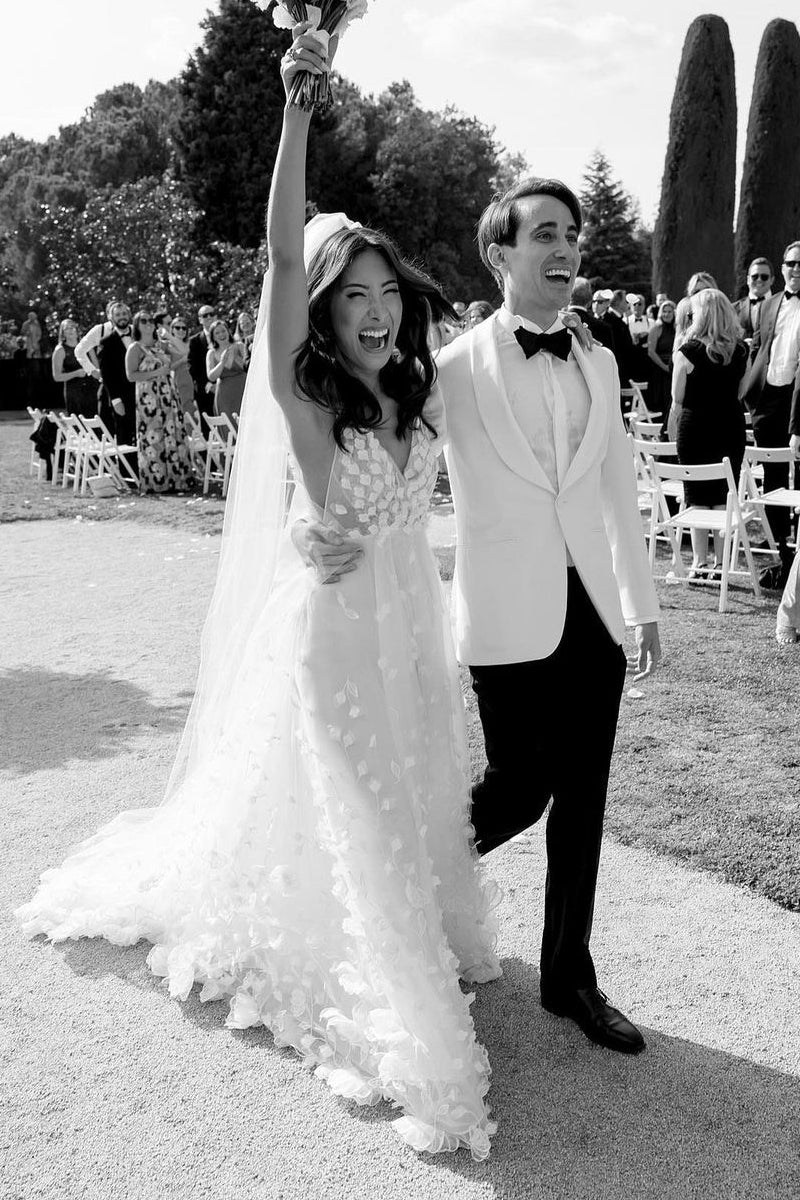 Pastoral Style A Line V Neck Tulle Long Wedding Dresses Gown with 3D Appliques HS988
