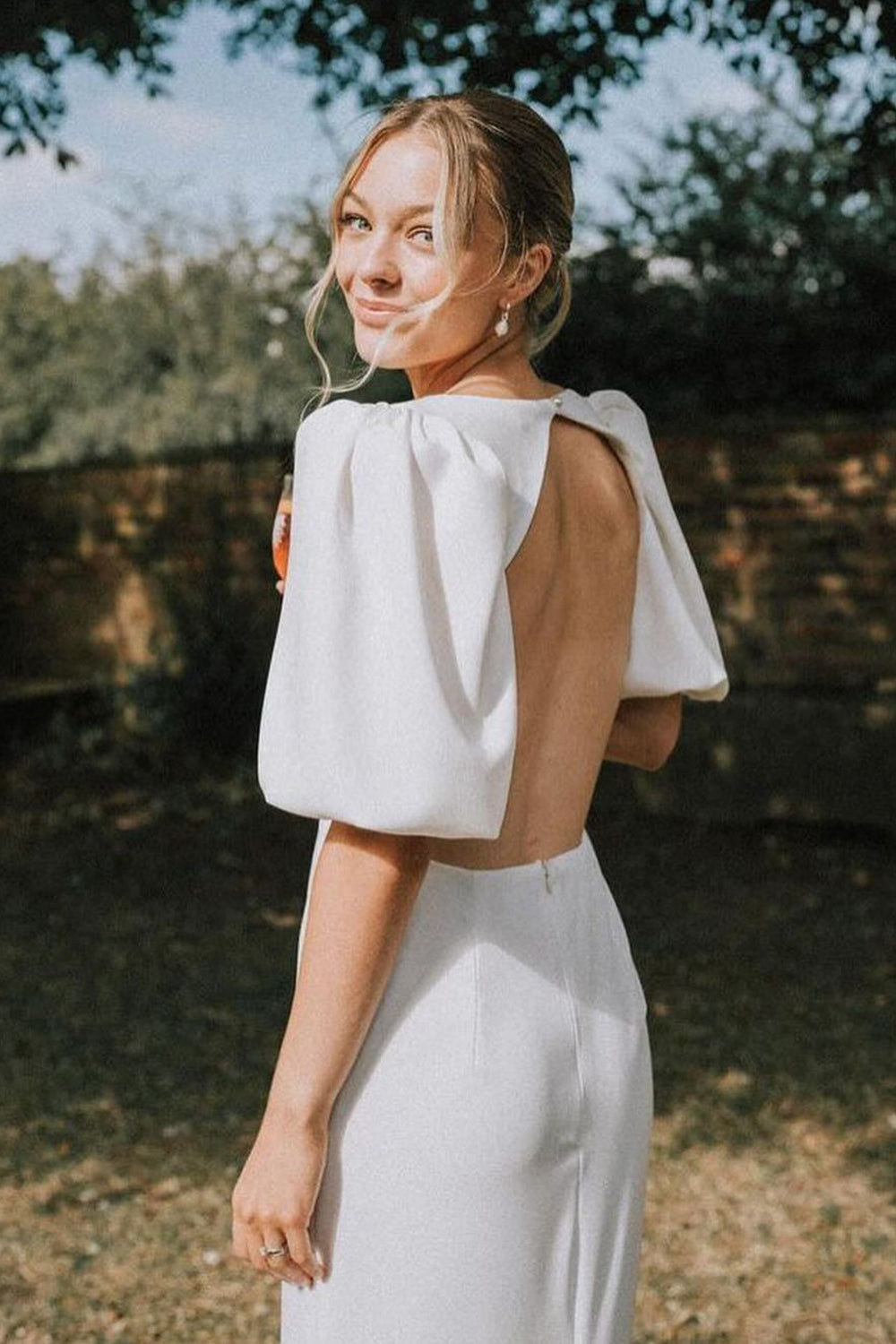 Pastoral Style Graceful Sheath V Neck Satin Wedding Dresses Gown HS955