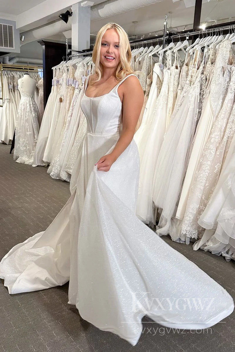 Sparkling A-Line Wedding Dress with Sleeveless Detail and Train Bridal Gown HS503