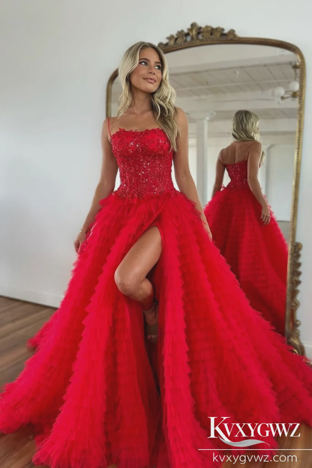 A romantic evening gown featuring a classic sweetheart neckline, airy tulle with tiered ruffle (cake) skirt, and luminous hand-beaded embellishment for couture sparkle. Perfect for black-tie galas, red-carpet moments, prom, or a formal wedding-guest look—elegant movement with high-impact drama. Save to your mood board for timeless glamour with modern shine.
