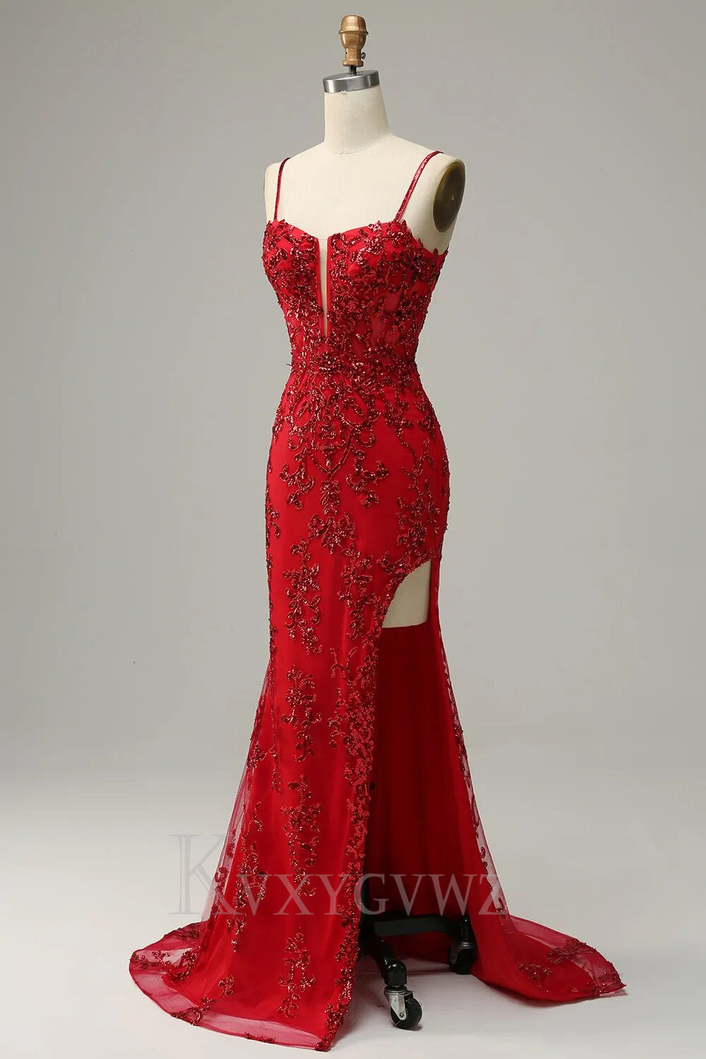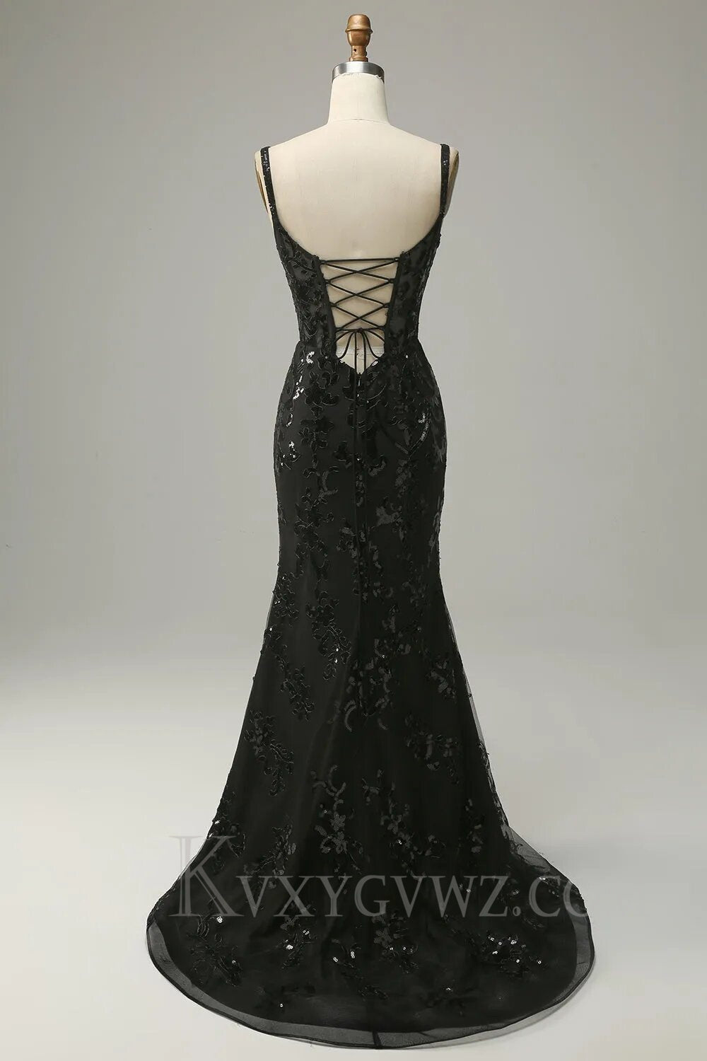 Sparkly Blue Sheath Sequins Lace Up Long Prom Dress with Slit LF021