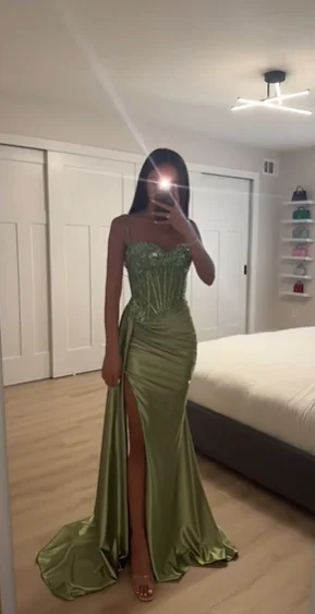 Sparkly Green Corset Sequins Long Prom Dress With Slit LF017