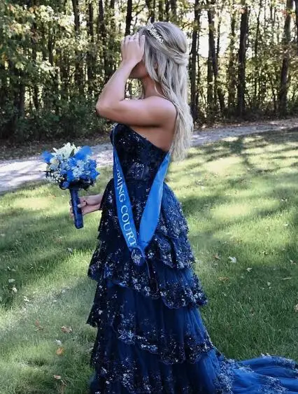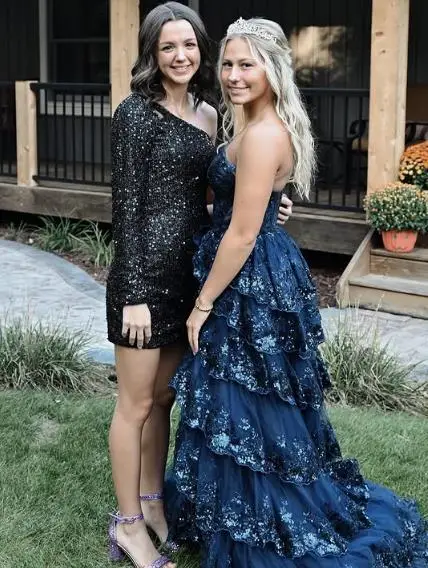 Make a statement in this bold fuchsia A-line evening gown crafted from layered tulle with all-over sequin floral lace applique. The design showcases an asymmetrical one-shoulder neckline, a structured corset bodice with visible boning for a sculpted silhouette, and a voluminous tiered “cake” ruffle skirt finished with a dramatic thigh-high slit and sweep train. Perfect for prom, pageants, quinceañeras, red-carpet galas, and editorial shoots—save this pin for Barbiecore and ultra-glam moodboards where color, texture, and photo-ready sparkle are the focus.