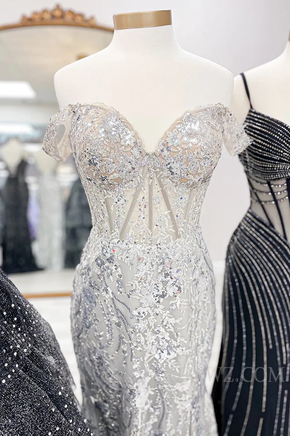 Sparkly Mermaid Golden Long Sequins Prom Dress With Slit LF155