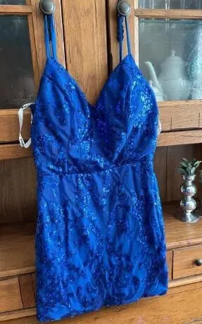 Sparkly Navy Spaghetti Straps Corset Tight Short Homecoming /Cocktail Dress with Beadings LF311